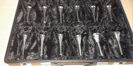 Verschiedene Mundstücke für Waldhorn und andere Blasinstrumente aus unserem Musterkoffer!